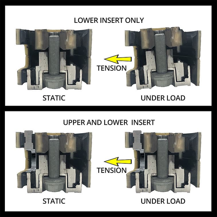 • L'entretoise inférieure empêche les inserts supérieur et inférieur de se toucher et de vibrer.